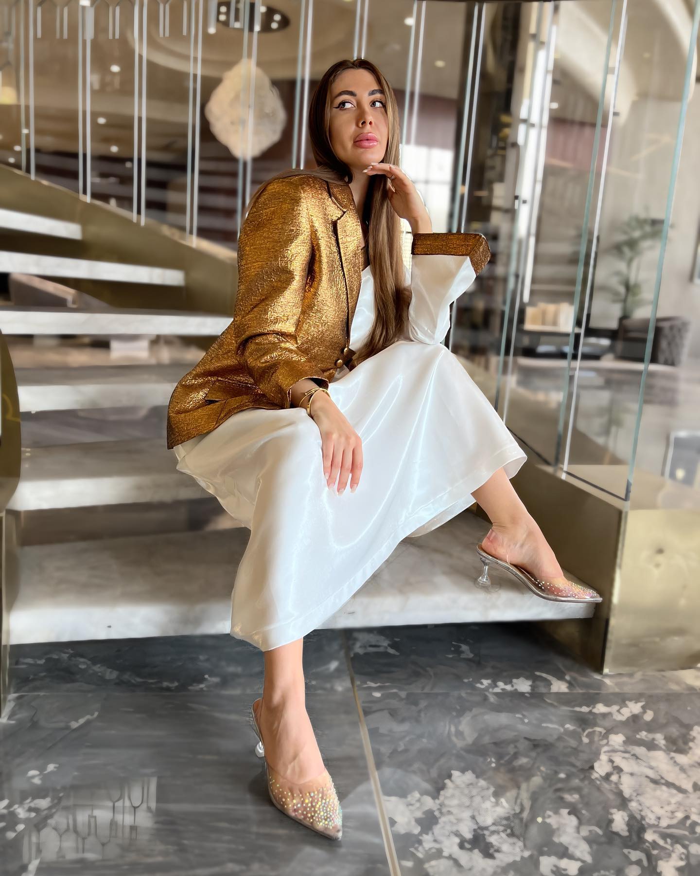 𝗪𝗵𝗶𝘁𝗲 𝗗𝗿𝗲𝘀𝘀 𝘄𝗶𝘁𝗵 𝗦𝘁𝘆𝗹𝗶𝘀𝗵 𝗛𝗮𝗹𝗳 𝗕𝗹𝗮𝘇𝗲𝗿