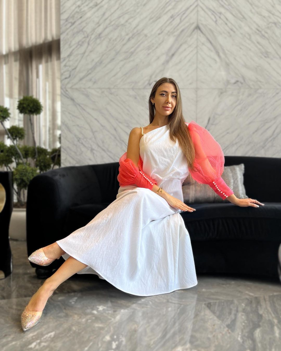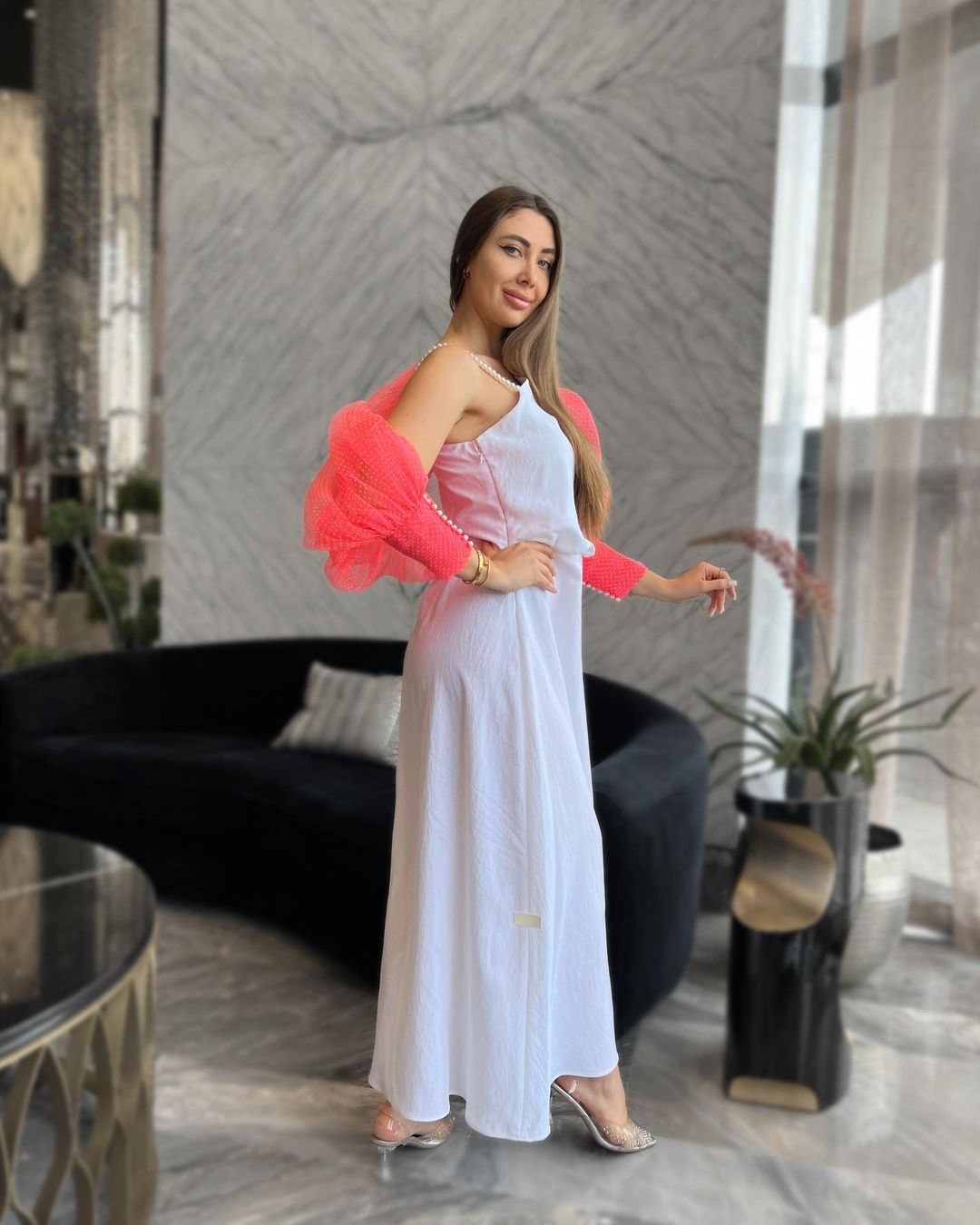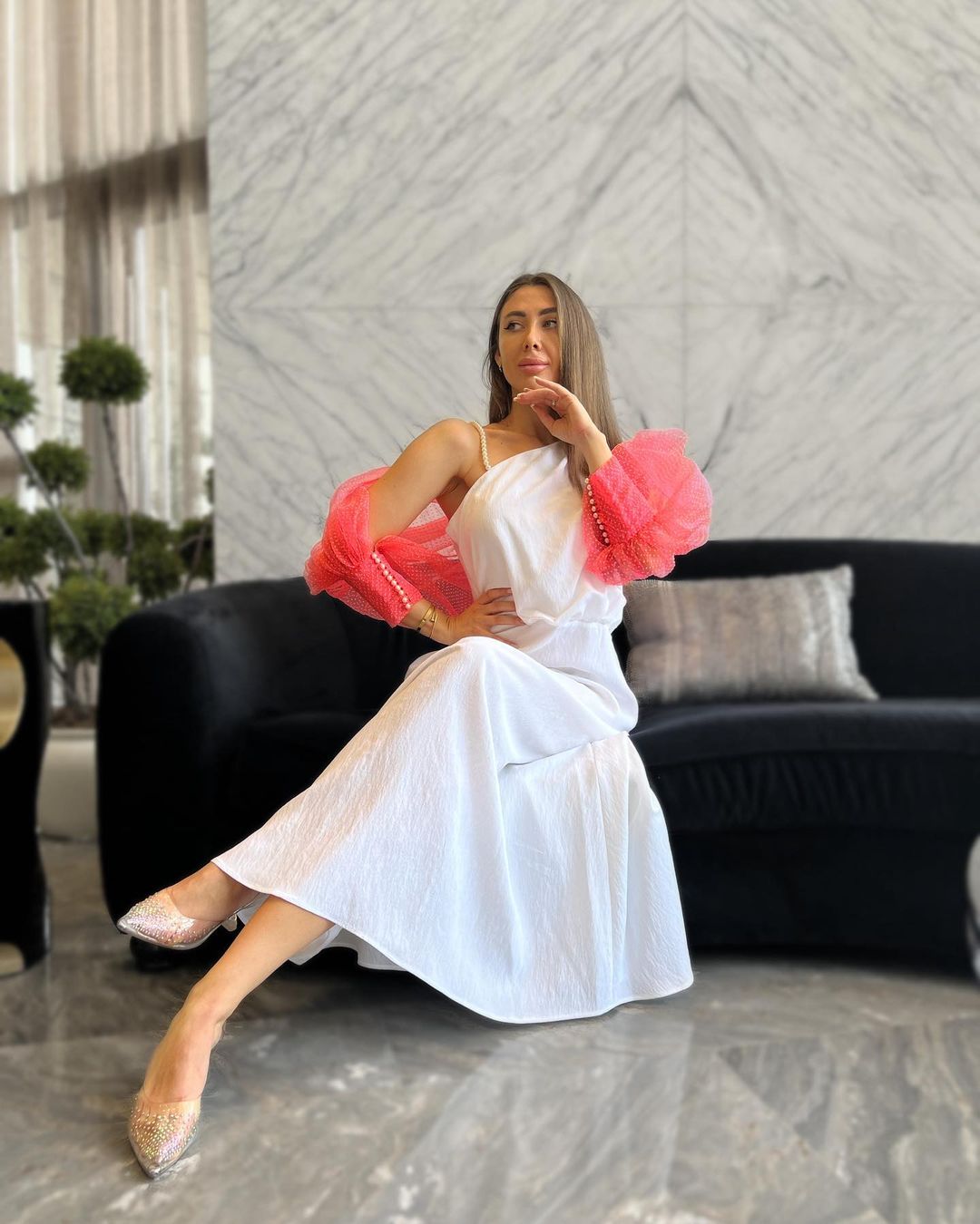 𝗪𝗵𝗶𝘁𝗲 𝗟𝗶𝗻𝗲𝗻 𝘄𝗶𝘁𝗵 𝗣𝗶𝗻𝗸 𝗧𝘂𝗹𝗹𝗲 𝗗𝗿𝗲𝘀𝘀